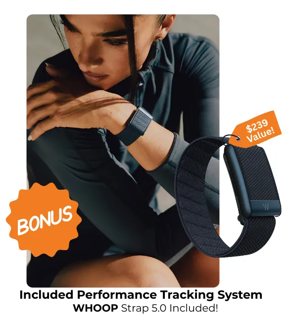 FREE WHOOP 5.0 included for sleep, strain, and recovery tracking.